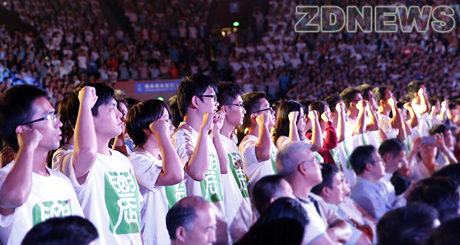 在振奋人心的音乐声中,主席台师长为新生代表佩戴校徽,六千余名新生也一同郑重地将校徽佩戴于胸前,肩负起作为浙大人的职责和使命。
