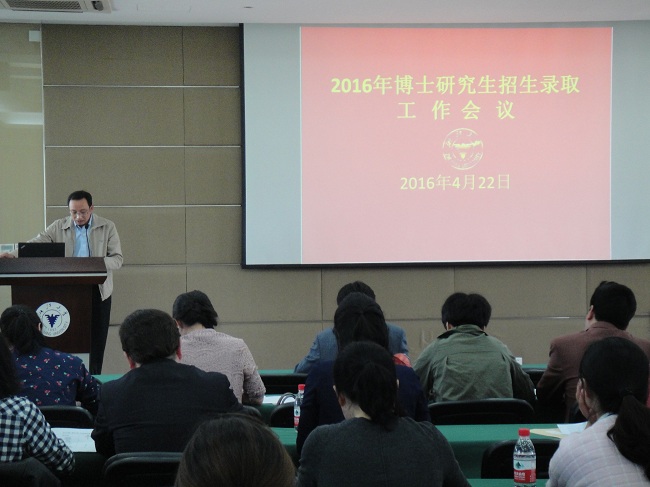 2016年4月22日,浙江大学2016年博士研究生招生录取工作会议在校友楼紫金港厅顺利召开。副校长严建华、研究生院副院长王立忠、研究生招生处处长朱原、学院(系)分管研究生工作的院长(主任)、书记和研究生科科长以及相关职能部门负责人参加了会议。会议由王立忠副院长主持。