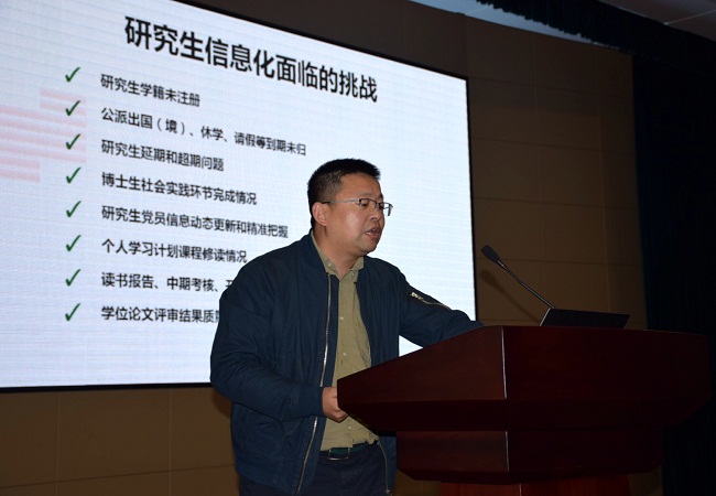 最后,严建华副校长作了总结发言。严建华副校长充分肯定了我校研究生教育工作取得的成绩,提出研究生院、各学院(系)及相关部门应加强联动,研究生教育应更多地依托信息化手段,助力研究生教育迈入新的时代。同时,他在总结讲话中强调了三点:一、应当着眼于浙大个性、浙大特色和浙大潜力,以习近平新时代中国特色社会主义思想为指引,全面贯彻党的十九大会议精神和全国高校思想政治工作会议精神,坚持以立德树人为根本任务,不仅仅要发挥研究生科研生力军的作用,更要注重对其人格塑造、综合能力提升的培养;二、浙江大学在取得累累硕果的同时还存在着一些有待破题的问题,面临各种变化的外部与内部情况,我们应当树立一流意识和忧患意识,拓宽改革思路,攻坚克难,加强学科交叉融合,促进高峰学科的形成,以达到“1+1>2”的效果;三、要继续推进研究生教育国际化进程,做到立足浙江、面向全国、走向世界,不辜负历史赋予浙大的责任,不辜负总书记对浙大的期望。