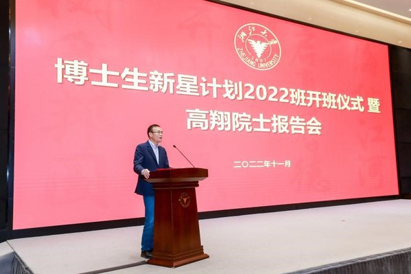 2022年11月4日晚,浙江大学博士生新星计划2022班开班仪式暨高翔院士报告会在求是大讲堂成功举办。中国工程院院士、浙江大学能源工程学院院长高翔出席开班仪式并作专题报告,浙江大学党委副书记朱慧出席并讲话。活动由浙江大学党委研工部部长张荣祥主持。研究生院常务副院长夏群科、人才工作办公室主任兼人事处副处长许翾、研究生培养处处长王青青、科学技术研究院副院长程术希、社会科学学部副主任顾建民、医药学部副主任何俏军、社会科学研究院副院长徐宝敏,以及党委研究生工作部、研究生院、各院系的分管领导出席本次活动。