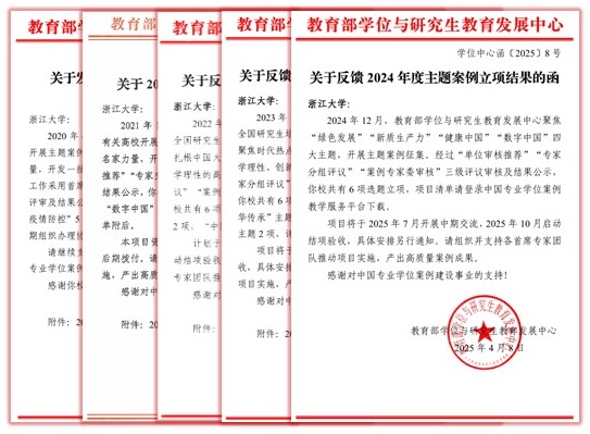 近年来,浙江大学创新全要素贯通的产教融合教学改革新理念,构建科学基础、创新潜力、实践能力、系统思维和人文精神融合的课程体系,以高水平主题案例建设推动案例教学和实践教学的深度融合。累计资助建设国家级案例210个、省级优秀案例489个、校级优秀案例679个。案例共建共享成效逐渐显现,4项案例入选“十大主题案例典型成果”,典型成果数是全国数量最多的高校之一;8项成果入选全国精品案例课堂项目,作为案例教学样板推出示范;3位专家入选全国首批名校名企案例研究基地项目,进驻企业一线实践提供解决方案;工程案例立项数走在全国前列。