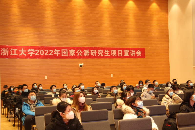 In order to better promote the implementation of the 2022 Government-sponsored Graduates Studying Abroad Program, let the majority of teachers and students fully understand the relevant policies, application conditions and process, and help them better prepare their program applications, the Graduate School of Zhejiang University organized an introductive forum in Zijingang Campus on January 14. Strictly following the requirements of Covid-19 epidemic prevention and control, this forum combined the off-line presentation with the online lecture. Some student representatives attended the forum on site. Department leaders, teachers in charge of 2022 Government-sponsored Graduates Studying Abroad Program and other students attended the meeting online, with more than 1000 participants in total.