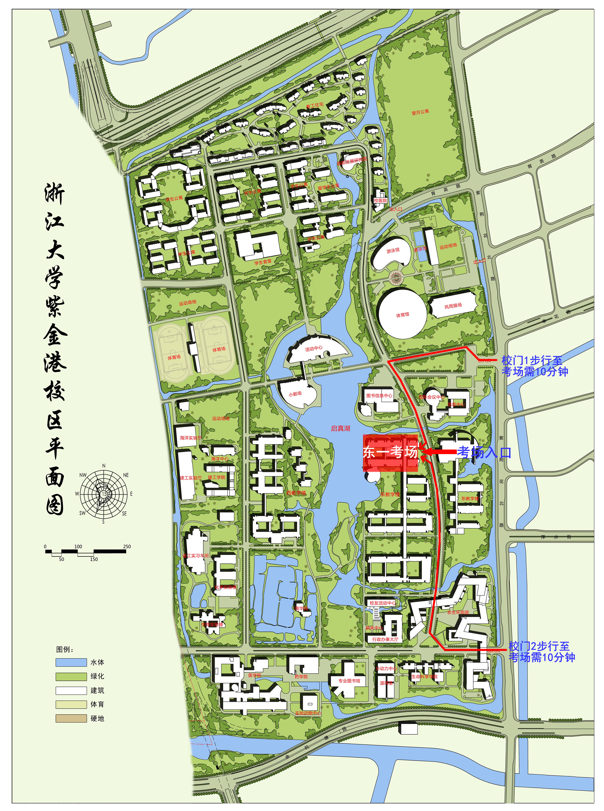 浙江大学2017年博士研究生入学考试考场全部设在浙大紫金港校区。紫金港校区位于杭州余杭塘路866号,离市中心(武林广场)约13公里,考生可坐10路 、74路、 89路、 93路、 97路 、129路、 132路 、226路等公交车到浙大紫金港校区站下车,从校门口行走至东一考场约需10分钟(见附件紫金港校区平面图)。