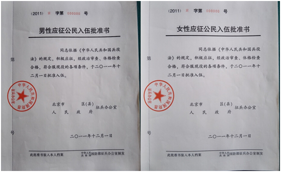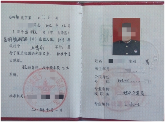 退役大学生士兵计划需上传入伍批准书及退出现役证。范例如下: